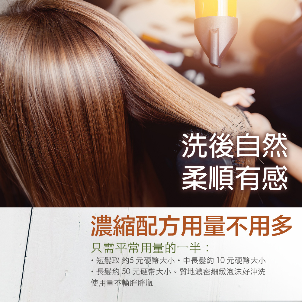 不含矽靈與類防腐劑,控油性佳,強健髮絲與健康頭皮,特別適合柔細長髮與受損髮質